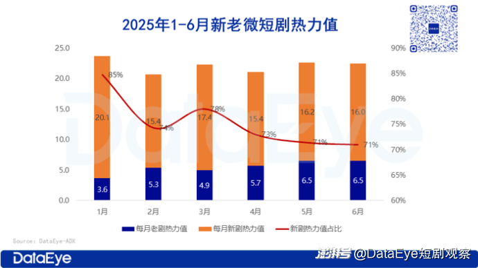 ADX短剧版数据显示:2025年上半年新剧的热力值总额超过了100亿元,占比约76%。