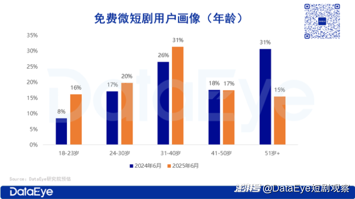 具体到今年 6 月的数据:40 岁以下年轻用户占比已突破 50%,较去年同期提升 15 个百分点;而51 岁以上老年用户占比从 30.52% 下降至 15.44%。