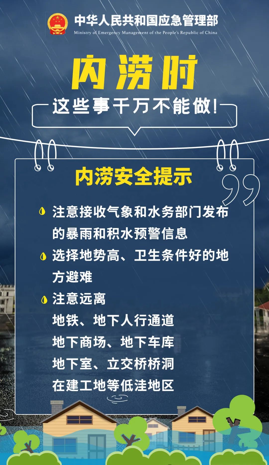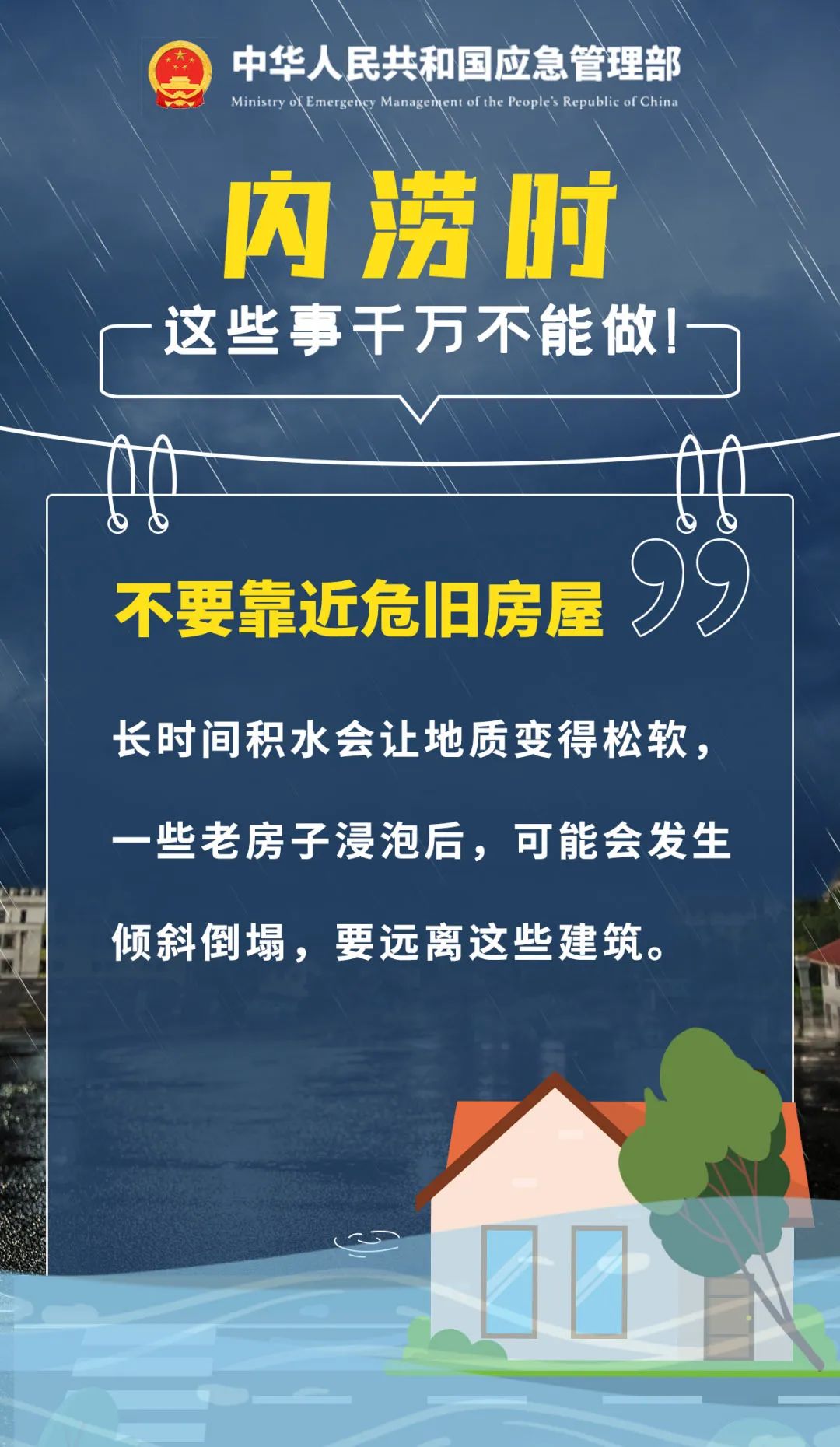 暴雨时尽量留在室内避险