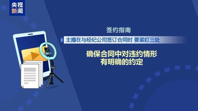 其次,要确保合同中对违约情形有明确的约定。郭栋佳:比如迟播几分钟扣多少钱,直播要符合平台的哪些规定,直播时出现哪些不规范用语、行为会构成违约,这些主要的违约情形,应当明确告知主播。特别要关注“等等”“类似”这种模糊的文字表述,它可能暗藏套路陷阱,大家一定要牢记,重要内容一定要用文字的形式在合同中明确。