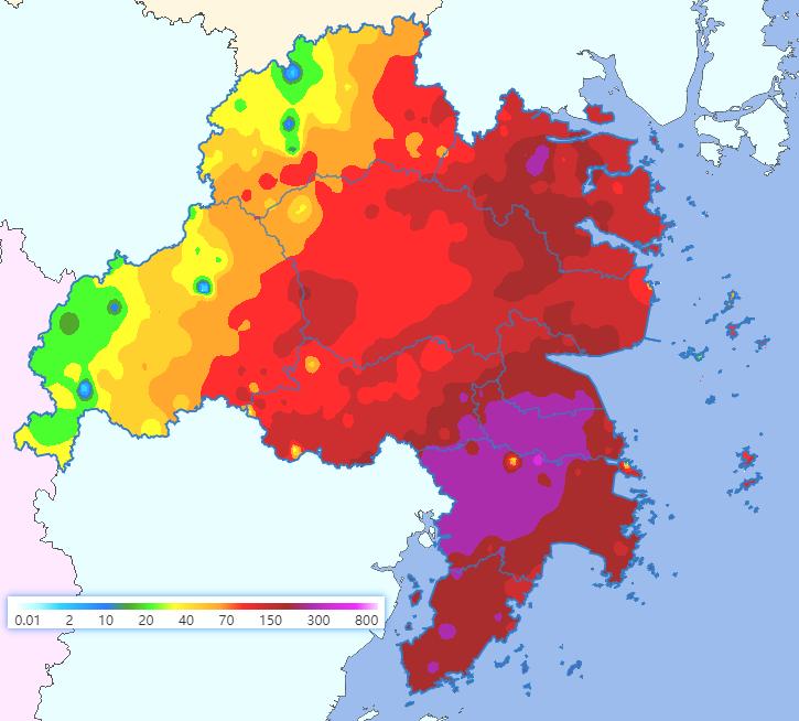 风雨情通报过程风雨:受“丹娜丝”影响,7日凌晨起,我市中东部地区陆续出现暴雨,部分大暴雨。截至今天17时,全市过程面雨量已达111.2毫米,各县(市、区)面雨量:路桥212.2毫米,温岭209.5毫米,玉环177.3毫米,椒江161.1毫米,三门143.1毫米,黄岩118.1毫米,临海105.8毫米,天台53.8毫米,仙居52.2毫米;有1个站雨量超300毫米,82个站雨量超200毫米;单点雨量最大温岭新河高桥小学337.3毫米,小时雨强最大临海小芝乌岩岙60.3毫米;沿海海面出现9~11级大风,风力最大温岭石塘一蒜岛30.1米/秒(11级)。