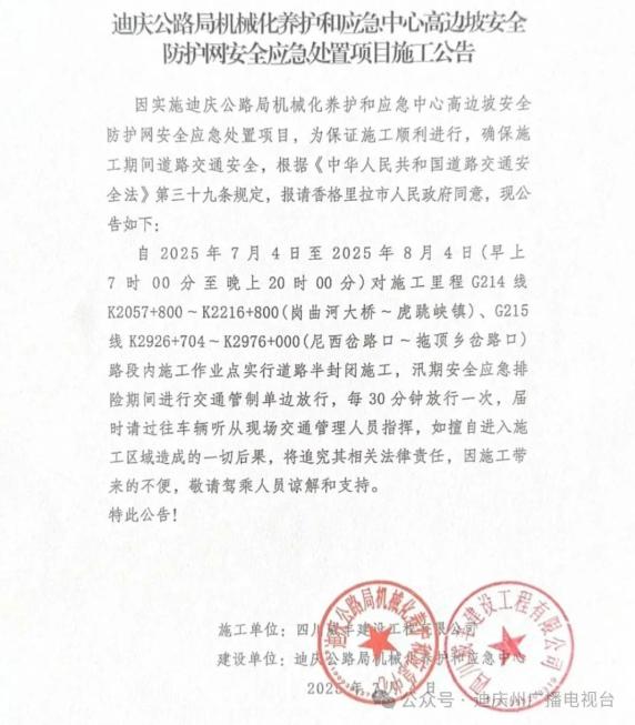 原标题:《香格里拉这两条路段实行半封闭施工→》