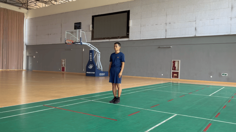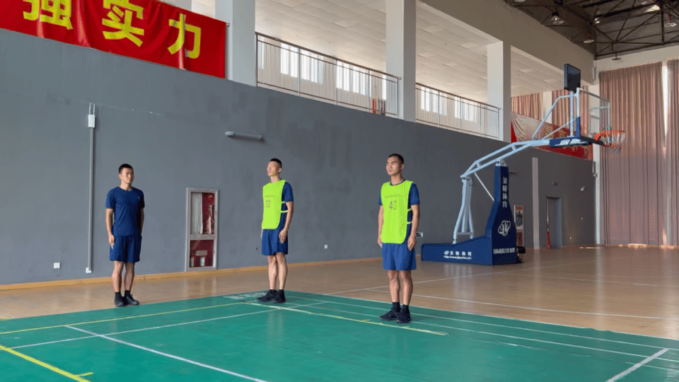 考核程序:在跑道或平地上标出起跳线,考生站立在起跳线后,脚尖不得踩线,脚尖不得离开地面,两脚原地同时起跳,不得有助跑、垫步或连跳动作,测量起跳线后沿至身体任何着地最近点后沿的垂直距离。两次测试,记录成绩较好的1次。