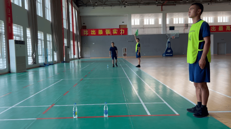 考核程序:在10米长的跑道上标出起点线和折返线,考生从起点线处听到起跑口令后起跑,在折返线处返回跑向起跑线,到达起跑线时为完成1次往返。连续完成2次往返,记录时间。
