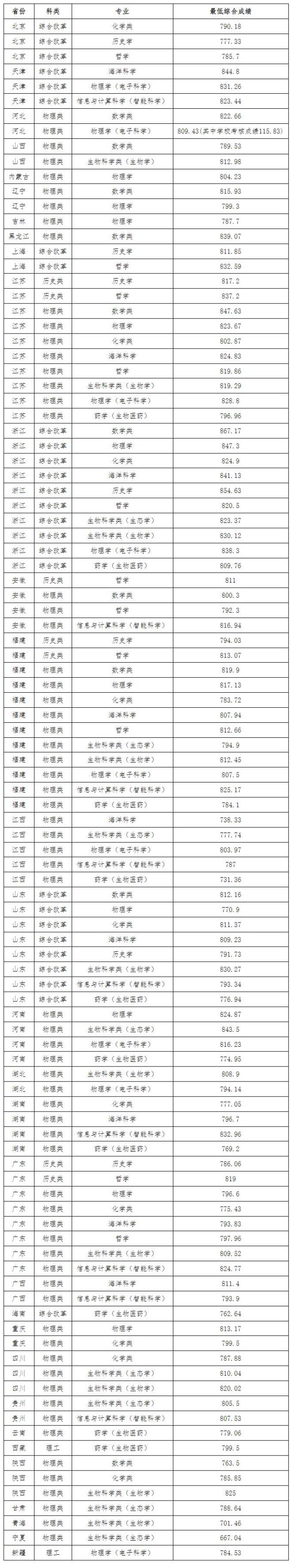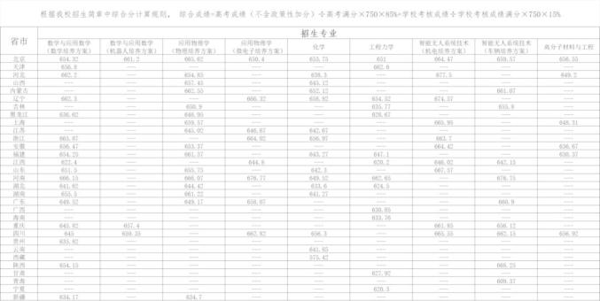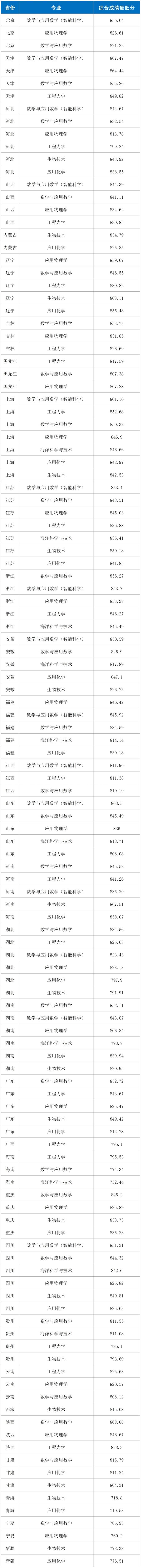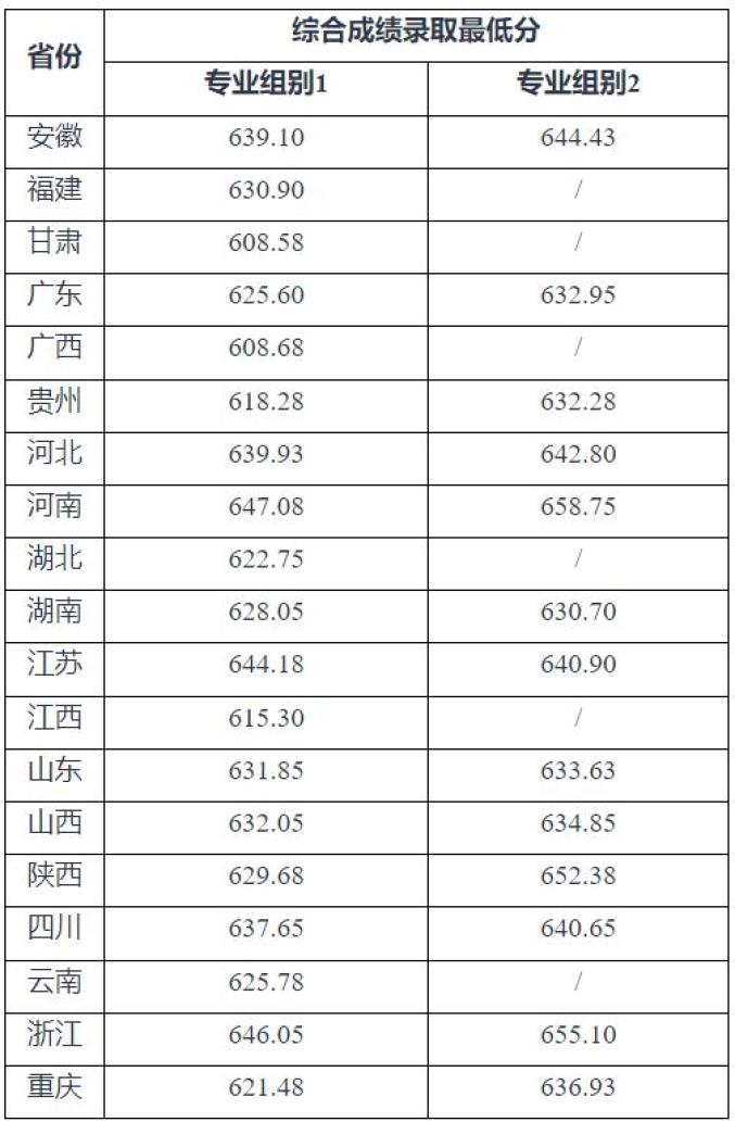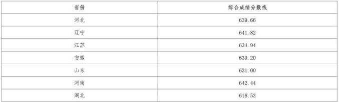 二、各省份录取最低综合分: