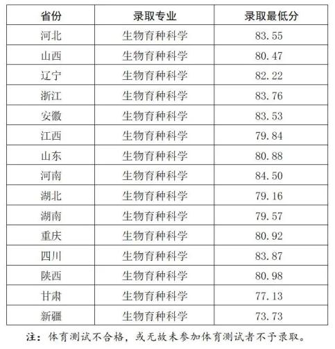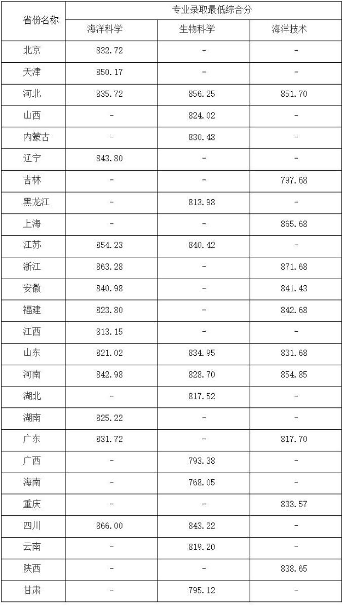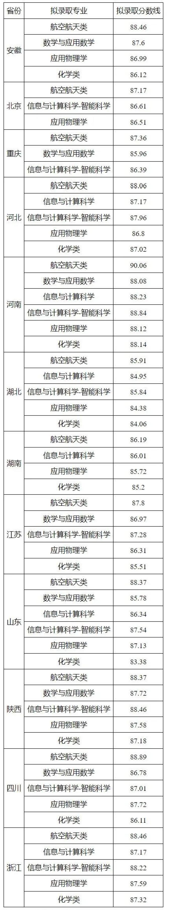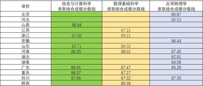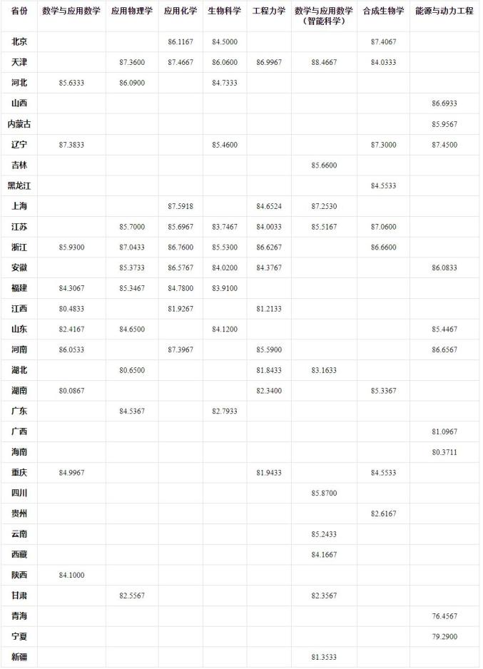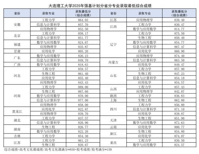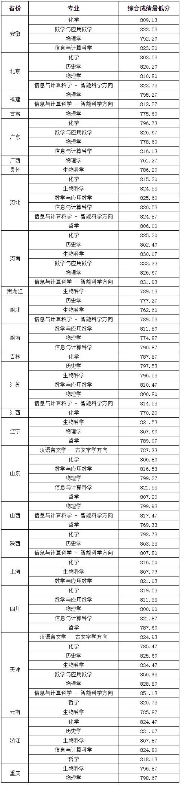 二、各省份录取最低综合分: