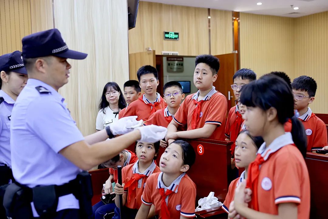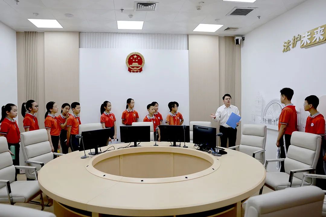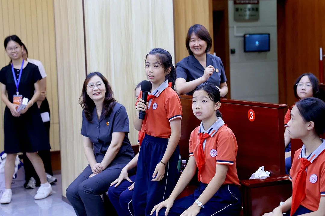 从诉讼服务大厅到法院长廊,从法院审判庭到少年审判特色诉讼活动场所,来自江门市蓬江区紫茶丰雅小学、江门市工贸职业技术学校的学生“走出校门”“走进法院”,近距离了解法院审判工作,脚步之间法治信仰的种子已在心中悄然萌芽。