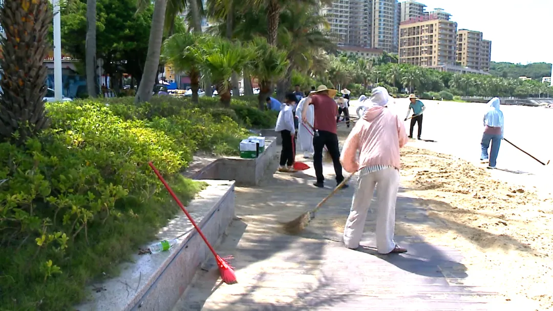 区市政建设事务中心市容道路负责人 戴毅杰:今天区市政中心共出动干部职工40多人,清理了400多米长的木栈道积沙,清理面积约500平方米,为游客夜间散步营造了良好环境。