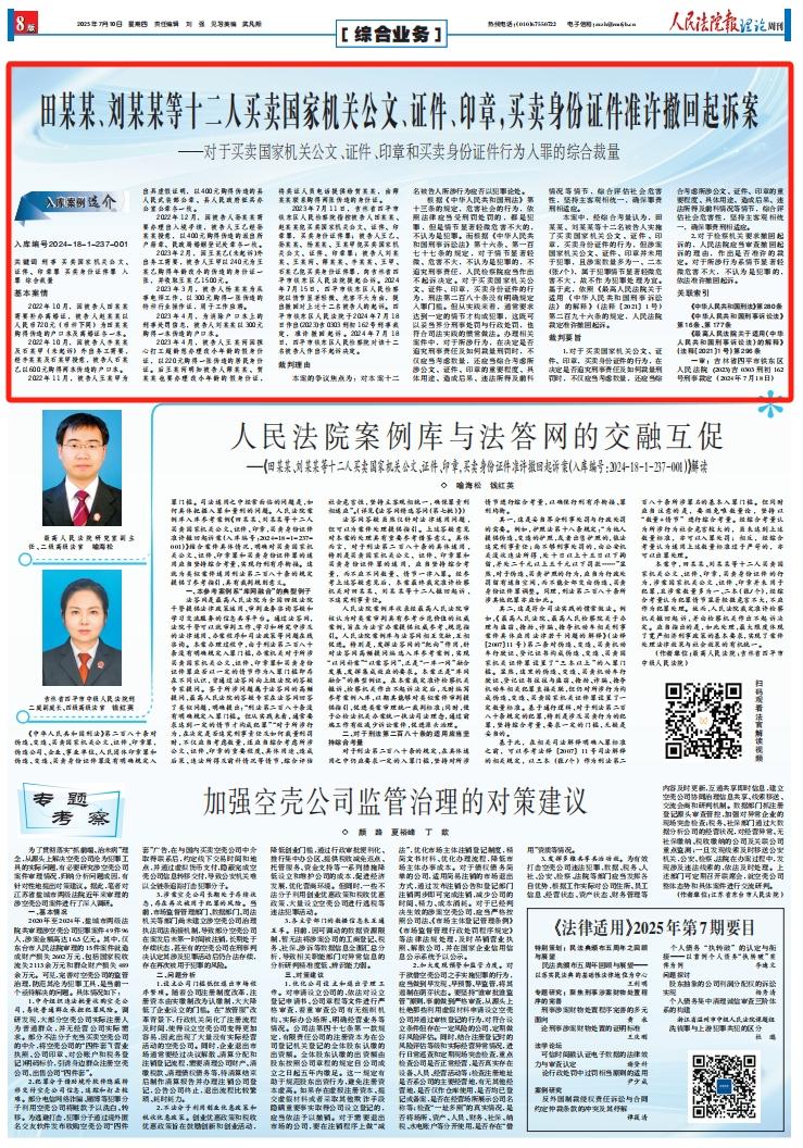 原标题:《入库参考案例:田某某、刘某某等十二人买卖国家机关公文、证件、印章,买卖身份证件准许撤回起诉案》