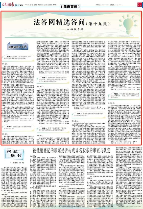 答疑专家:上海市高级人民法院民事审判庭 曹湘芹