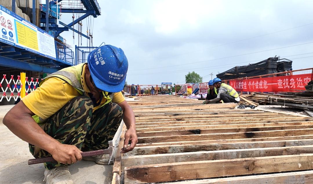 连日来,在位于我县境内的连宿高速二期工程建设工地上,全体建设者克服高温天气奋战一线。目前,施工人员正在全力推进叮当河特大桥建设,力争在12月底完成主跨合拢。