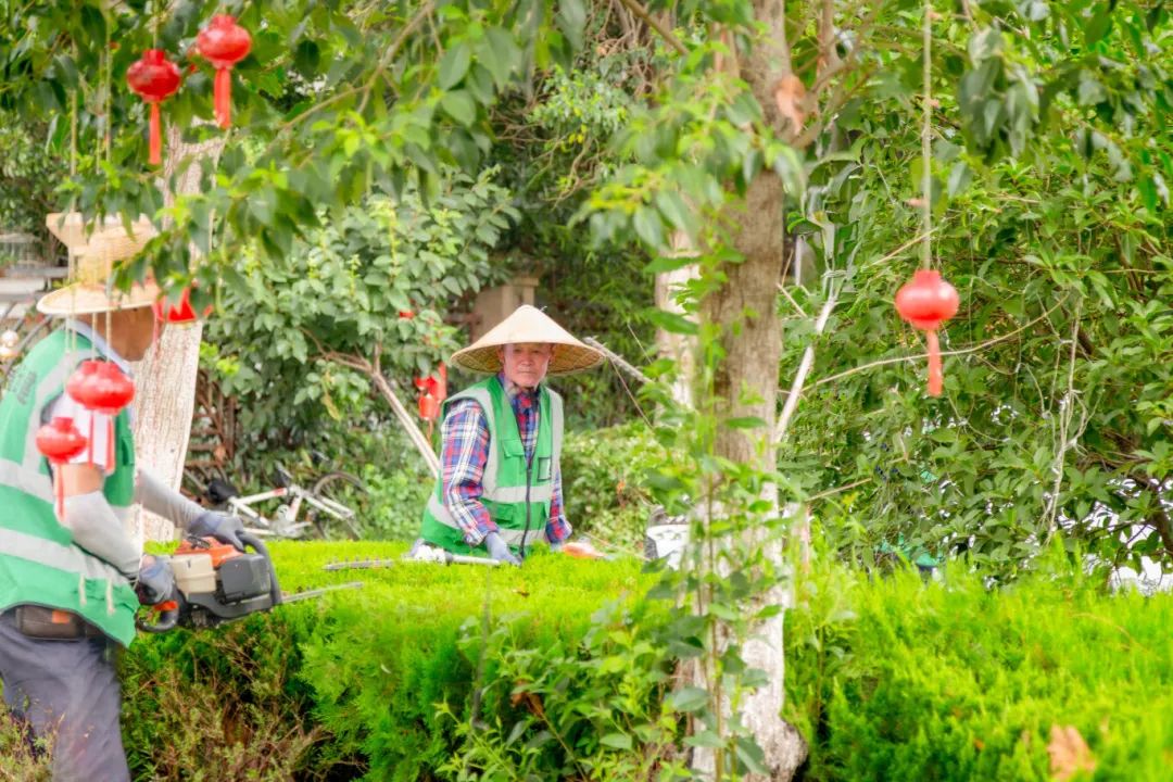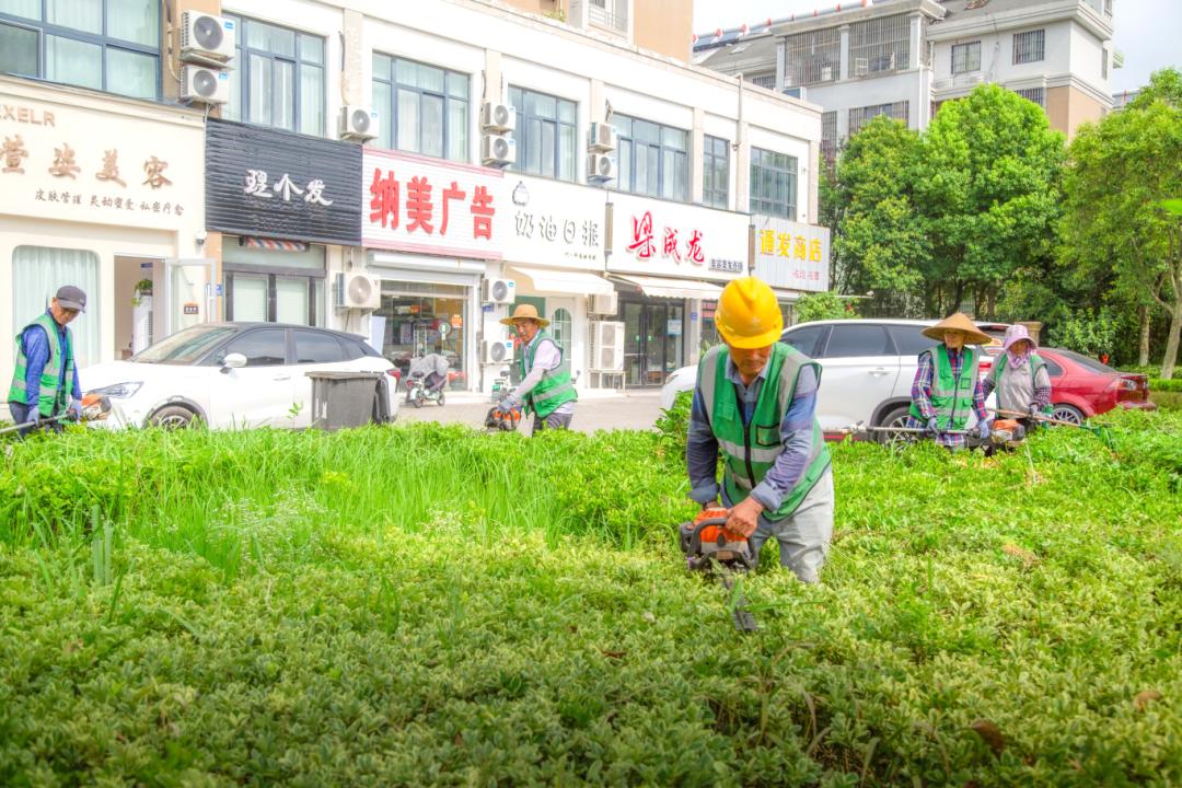 县绿化管理部门科学调整作业时间,避开正午最热时段,并为工人们配足饮用水和防暑药品。