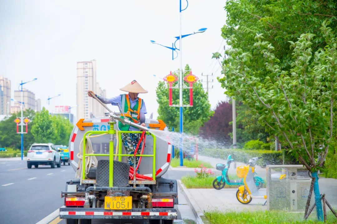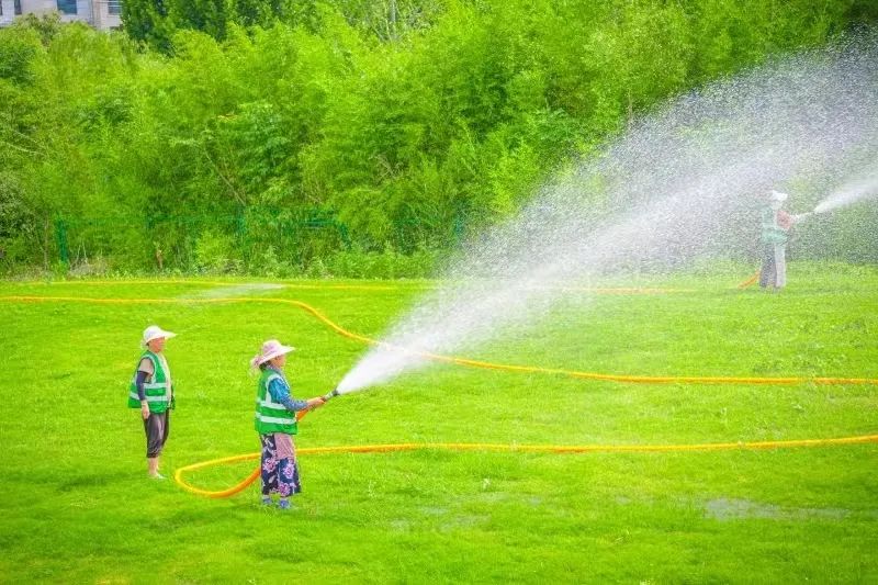 在城区各处的绿化带、公园里,绿化养护工人们不惧炎热,手持除草机械,仔细清除着杂草,汗水浸透了厚厚的工作服;同时对县城区部分绿植开展降温作业,按照“突出重点、先急后缓、细浇慢灌、浇足浇透”原则,加密对新植树木、时令花卉等喷洒频次,保障苗木的正常补水要求。