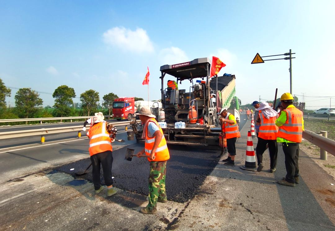 日前,记者在204国道灌云段预防性养护工程现场看到,养护工人身着反光背心,正在对部分破损路段进行修复。滚烫的沥青蒸腾着热浪,压路机轰鸣着反复碾压,养护工人挥舞着手中的工具配合着摊铺机,将路面的沥青混合料摊铺平整。类似场景也在县域内其他国省干道上演,每一处施工现场都热火朝天。