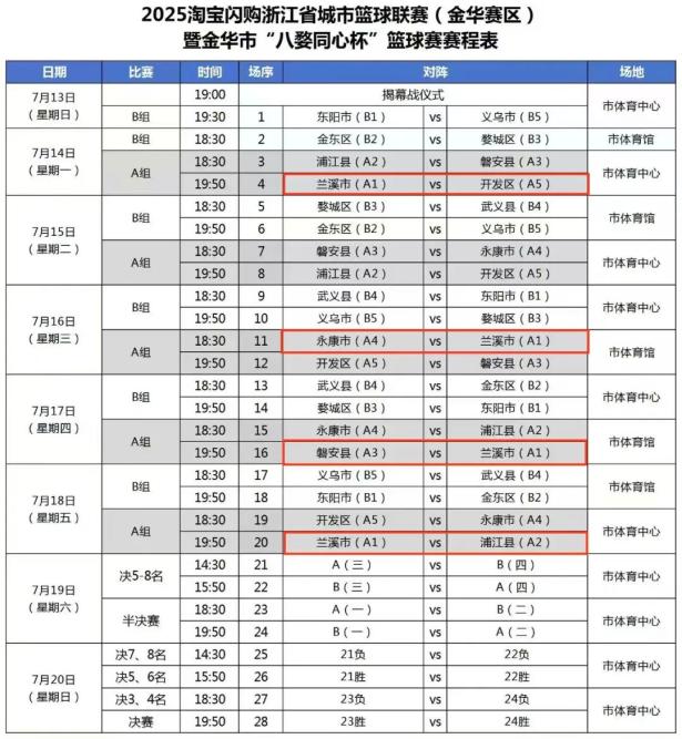 7月13日,2025年浙江省城市篮球联赛(简称“浙BA”)暨金华市“八婺同心杯”篮球赛火热开启。经过多轮试训与选拔,兰溪队已组建完毕,将出征2025“浙BA”金华预选赛!赛事简介: