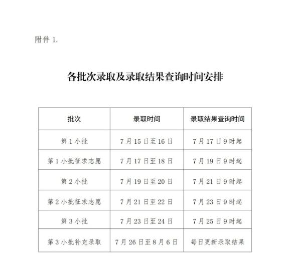市教育考试院将分别于7月16日20时后、7月20日20时后、7月25日20时后在市教育考试院网站(www.jsxzeea.cn)公布各小批征求志愿招生计划。