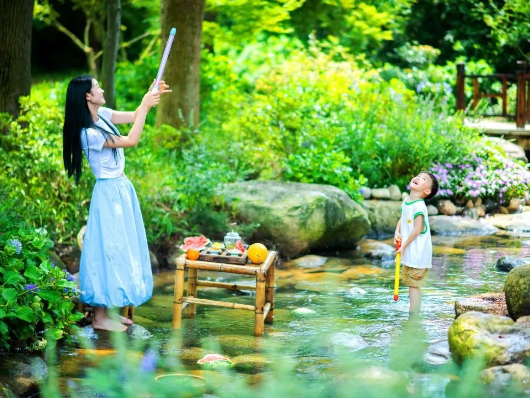 即将于7月20日焕新开放的拈花湾鹿鸣谷夏日避暑乐园,以20000平方米空间打造5大主题区,包含Hey Blue绿洲快闪水乐园的亲子水战、鹿鸣趣乐园的山涧野玩、树屋咖啡的高空纳凉等特色项目。此外,灵山清凉趣味的“夏季泡泡纳凉节”“冰棍纳凉节”也将陆续登场。