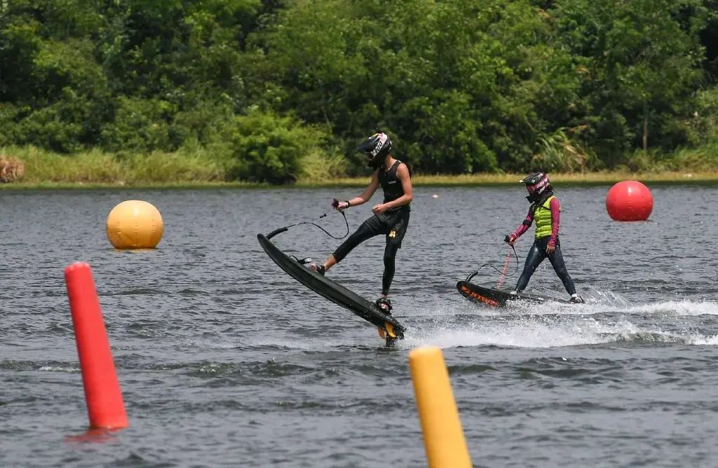 近日,在婺城区长岭水库,国家动力冲浪板集训队运动员们在进行训练,迎战第12届世界运动会动力冲浪板比赛。据悉,第12届世界运动会将于8月7日在成都开幕,这是动力冲浪板首次进入国际综合性运动会,并成为正式比赛项目。