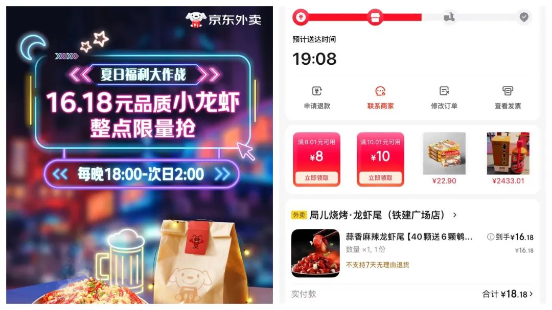 同时淘宝闪购的“0元购”活动侧重在即时零售上,其赠送给用户的“冰淇淋0元”、“0元饮料/啤酒”等免费券,适用于便利店配送场景。京东方面也进行跟进,不仅发放了大额百亿补贴券,还于周五晚上上线了“一口价16.18!请全国用户吃品质小龙虾”的特定活动。不少用户已经率先尝鲜。