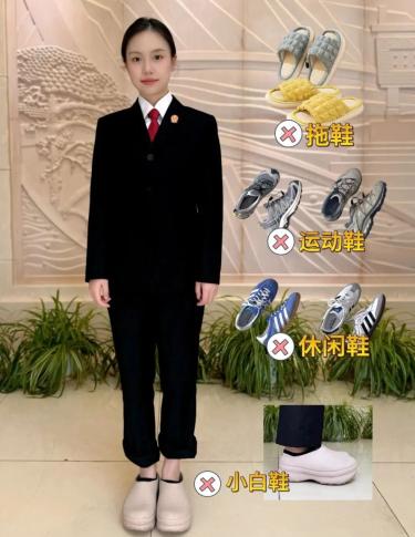 (六)着审判制服时,不穿拖鞋、凉鞋、运动鞋、小白鞋、休闲鞋等与制服不相称的鞋子(见图)。