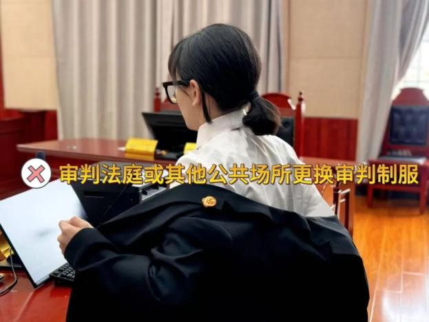 (十一)法院工作人员,不在审判法庭及其他公共场所更换审判制服(见图)。