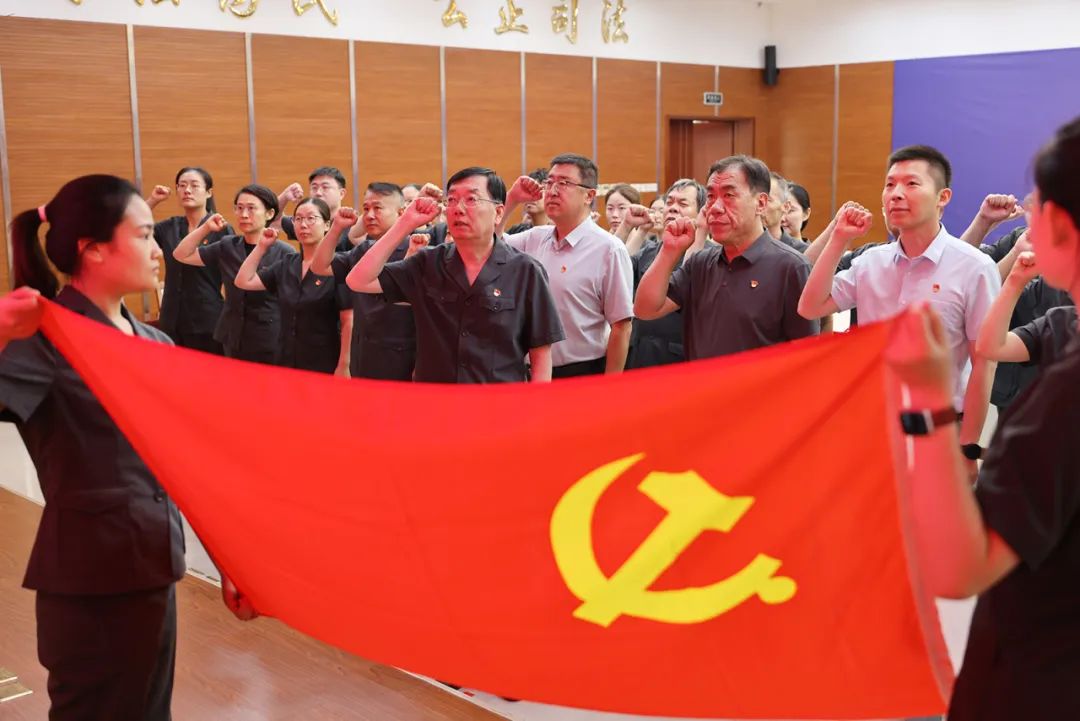 活动最后,全体党员干警面向党旗,庄严举起右拳,重温入党誓词。代表声音