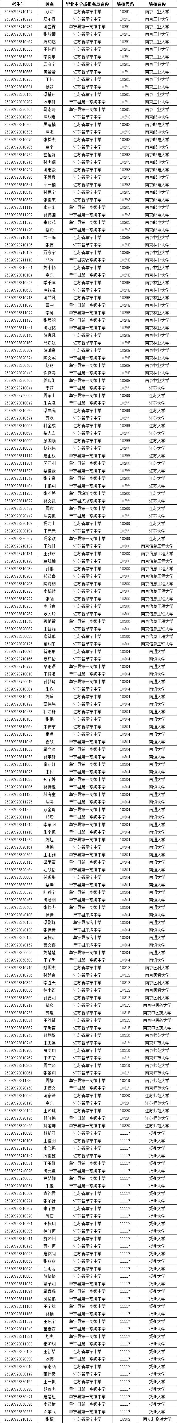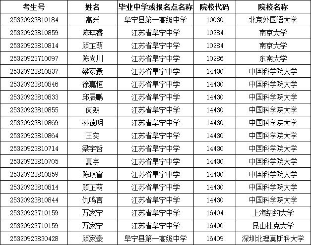 阜宁入选的考生有