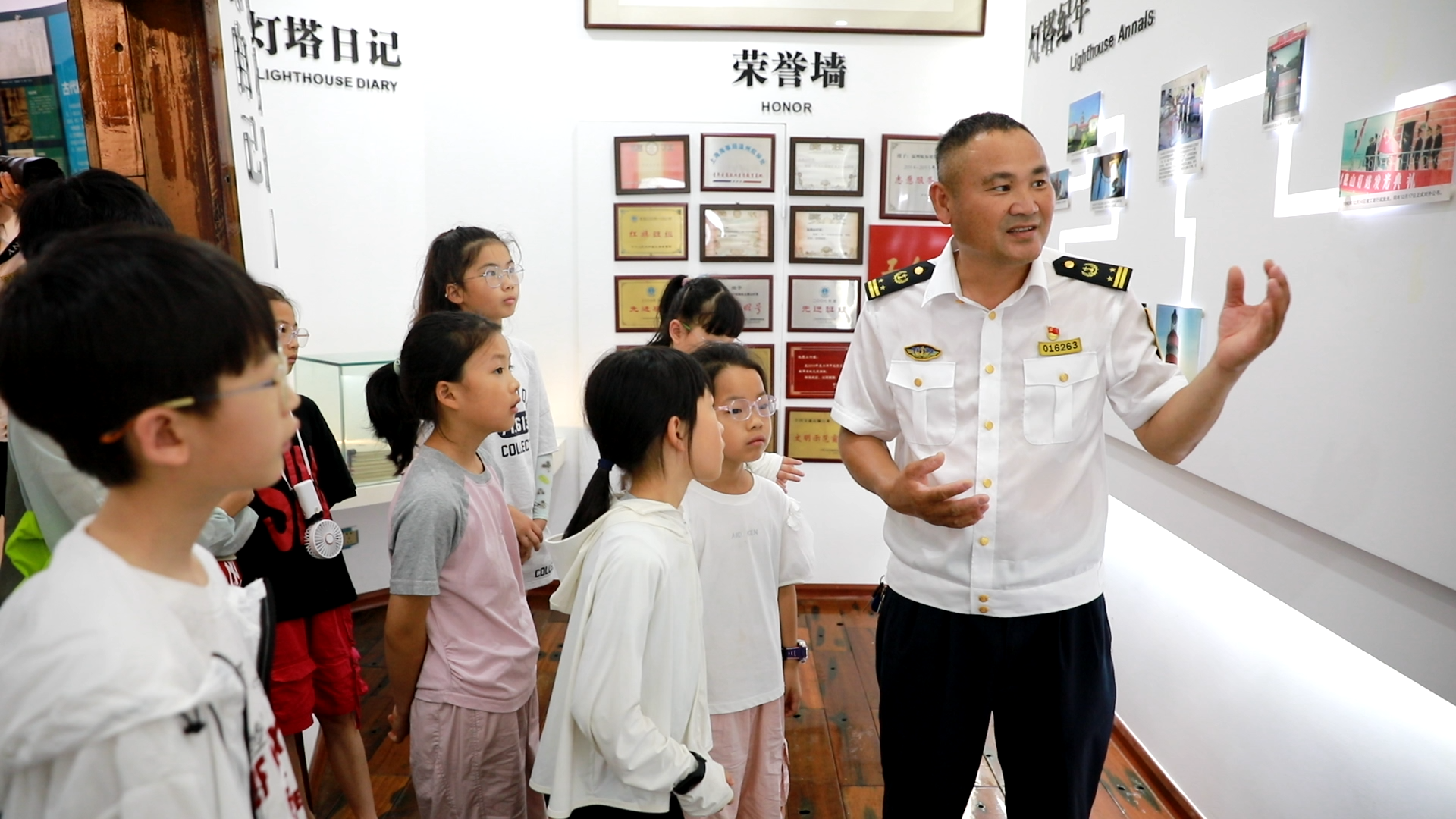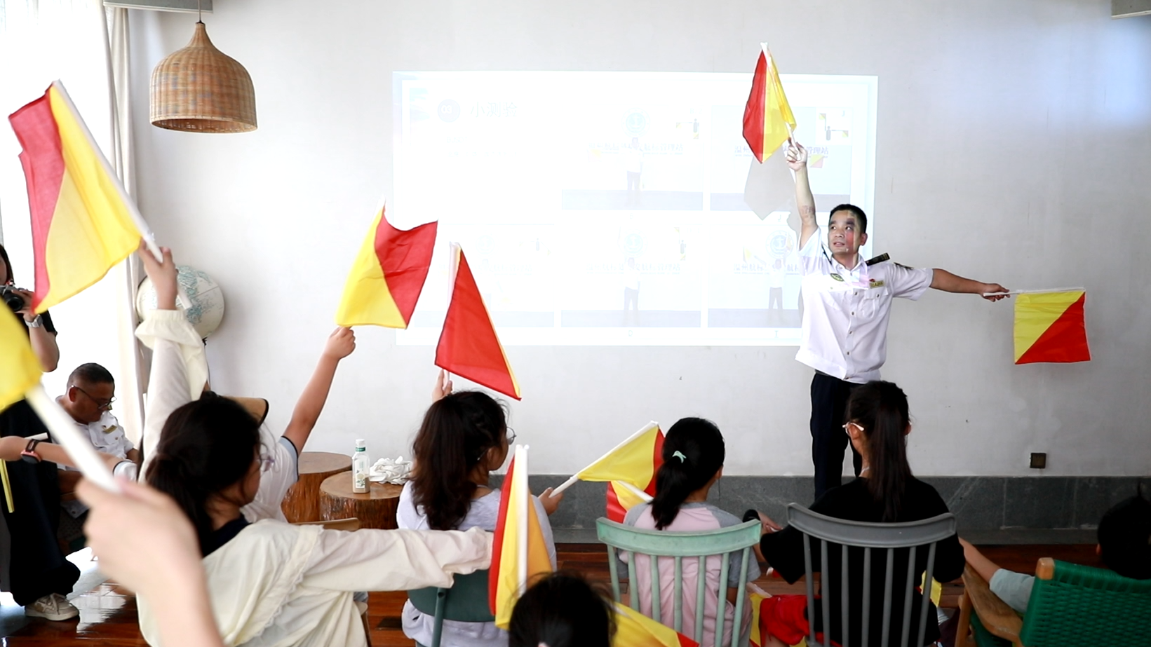 踏上北麂岛,北麂山灯塔成为最生动的教科书。在灯塔主任杜忠良的带领下,学生们步入北麂山灯塔文化展览馆,了解灯塔作为“海上烽火台”在指引航向、保障安全中不可替代的作用。温州航标处工作人员也将课堂移至海风轻拂的海岛,让学生们学习旗语通讯,练习不同的水手绳结。