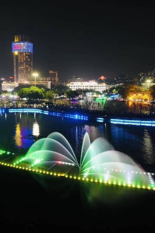 夜游牌坊广场赏音乐喷泉,