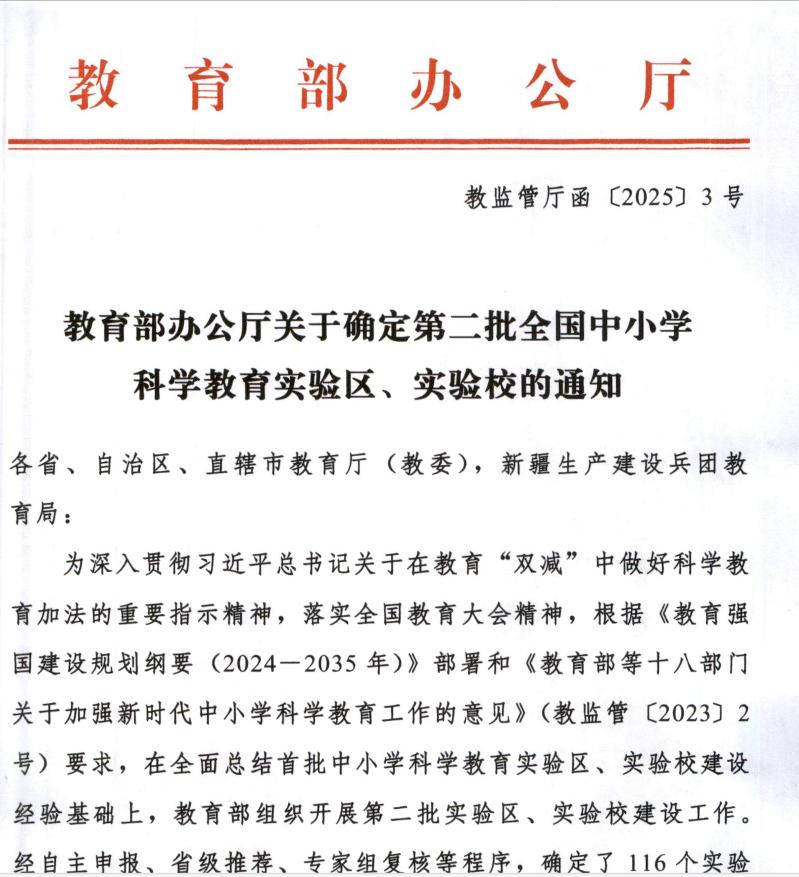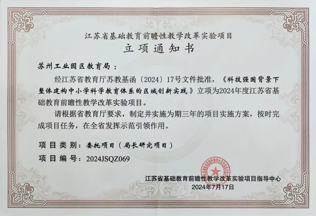 原标题:《“全国中小学科学教育实验区”,园区上榜!》