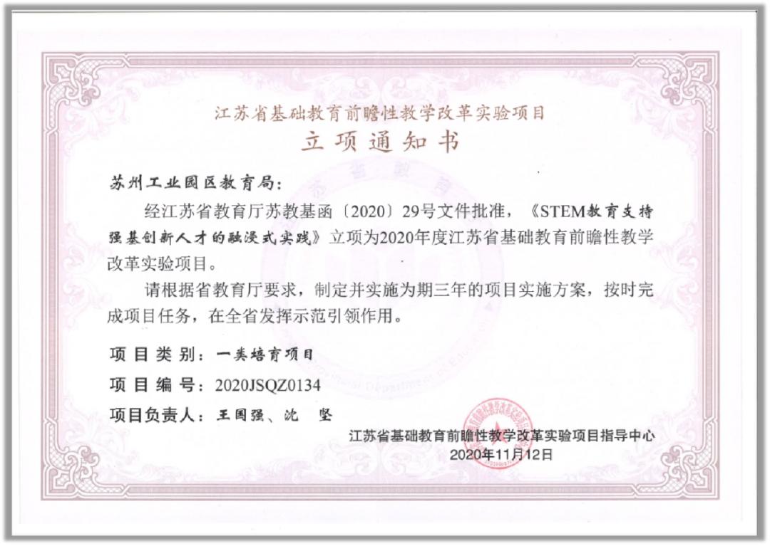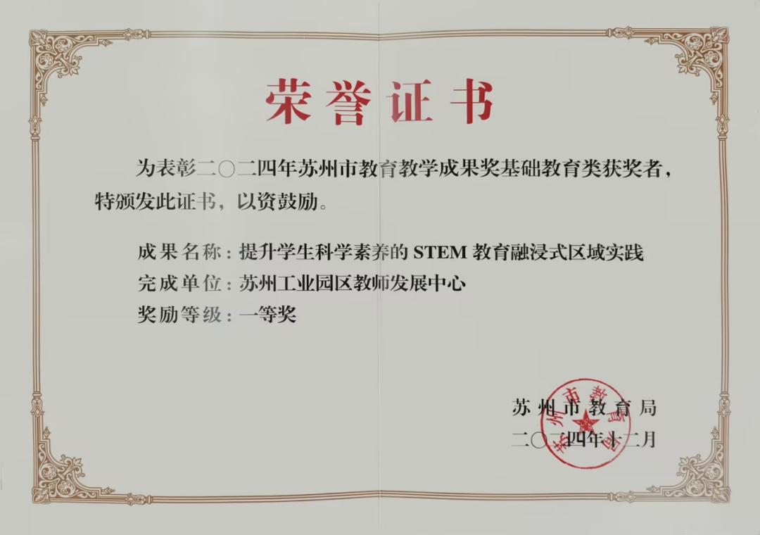 苏州工业园区始终将科学教育融入打造开放创新的世界一流高科技园区的进程中,扎实推进“教育、科技、人才三位一体”协同融合发展。在《科技强国背景下整体建构中小学科学教育体系的区域创新实践》《STEM教育支持强基创新人才的融浸式实践》等系列省基础教育前瞻性教学改革实验项目与课题的引领下,在中小学科学教育的多个关键领域率先探索,通过多主体协同,多要素联动,打造区域“大科学”教育生态,形成了“科教人才互通、活动场域联通、课程资源融通”的区域科学教育特色。