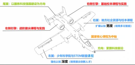 二是“全学段贯通”促成长——构建“一体两翼双驱”课程架构(国家课程为轴,校本课程与拔尖课程为翼,基础与进阶实践双驱动),开发“五维六阶四平台”课程体系(覆盖物质科学、空间科学等五大领域,匹配幼儿园到高中各阶段需求);建立“小初高”贯通的科学素养评价体系,通过区块链档案记录全学段科创数据,为强基创新输送“潜力股”。