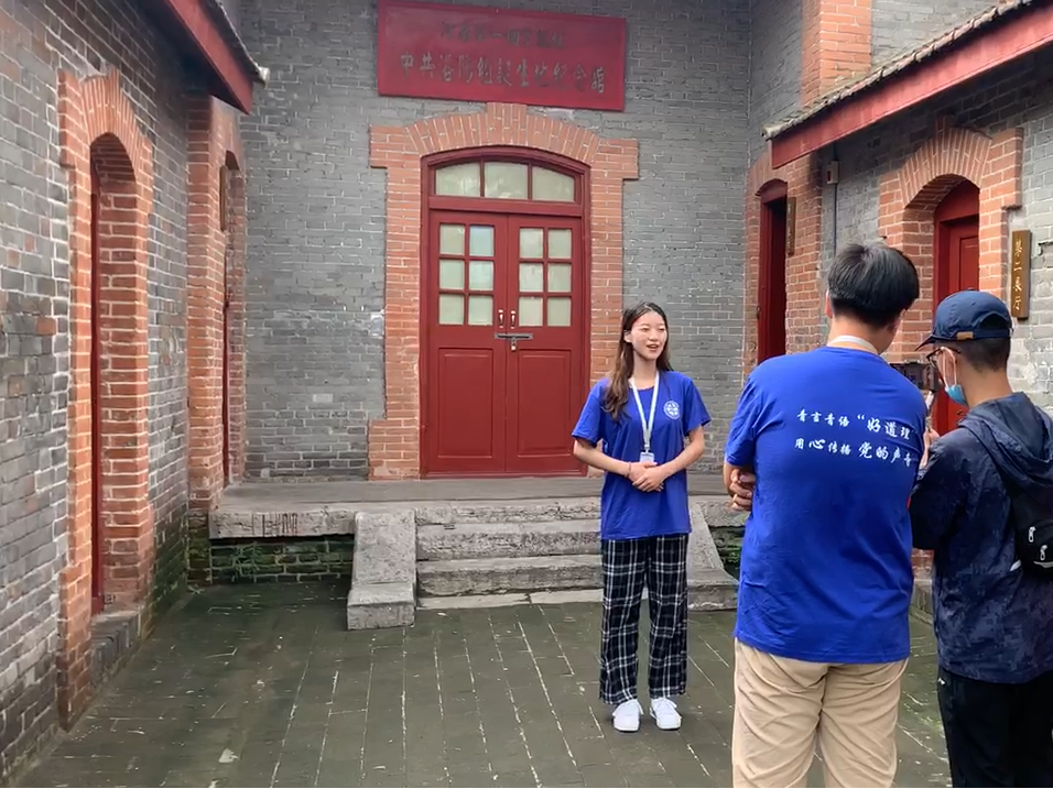 学生在中共洛阳组诞生地纪念馆拍摄制作宣讲视频