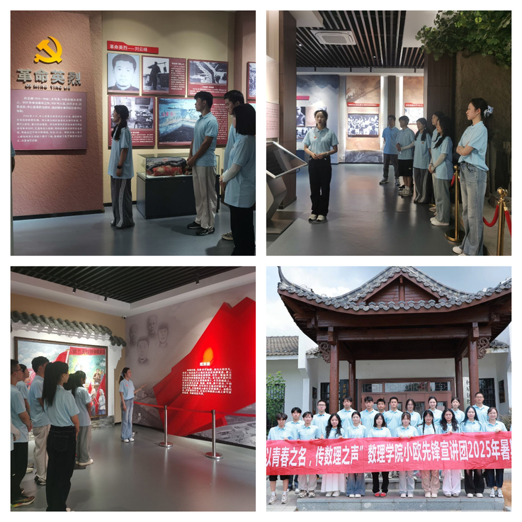 学习活动后,三位佩戴数理“小欧”徽章的大学生讲解员活跃在纪念馆内,他们声情并茂地为前来参观学习的人们介绍着镌刻着初心使命的红色坐标;讲述着那些激荡人心、永不褪色的红色记忆。