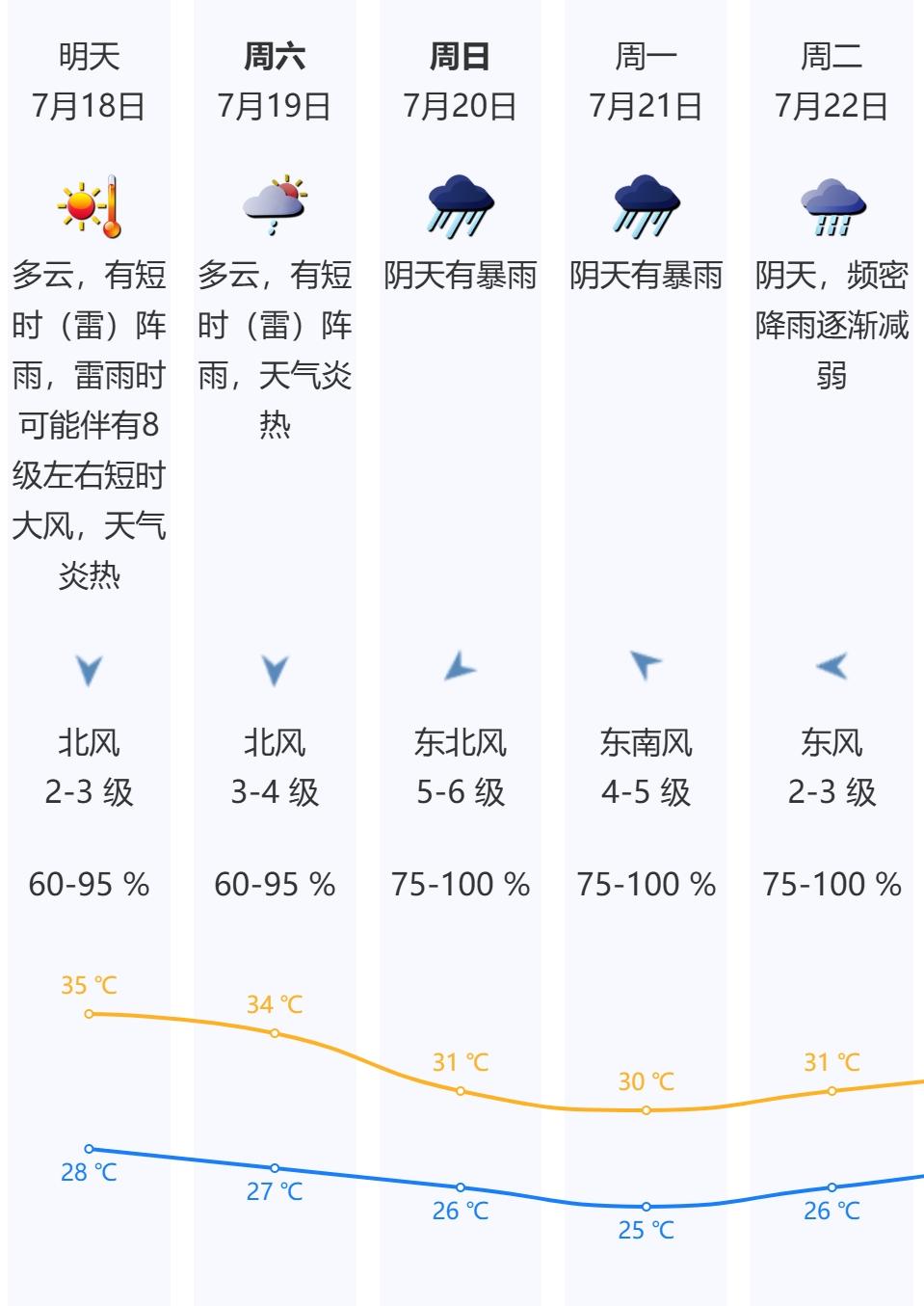 18-19日:多云间晴天,有(雷)阵雨,雷雨时可能伴有8级左右短时大风,高温天气维持,19日臭氧污染风险高。