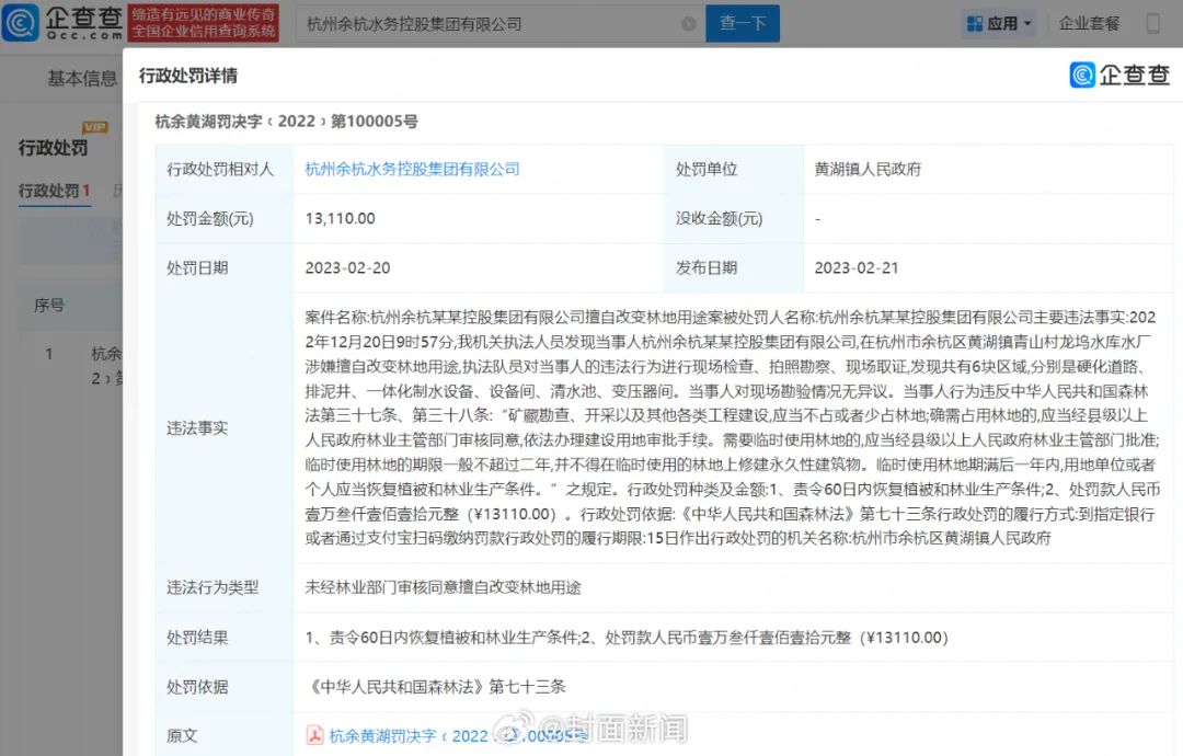 据封面新闻消息,余杭水务集团不是第一次出现负面消息了。企查查APP显示,杭州余杭水务控股集团有限公司成立于1999年7月,由杭州临平城市建设集团有限公司等共同持股。