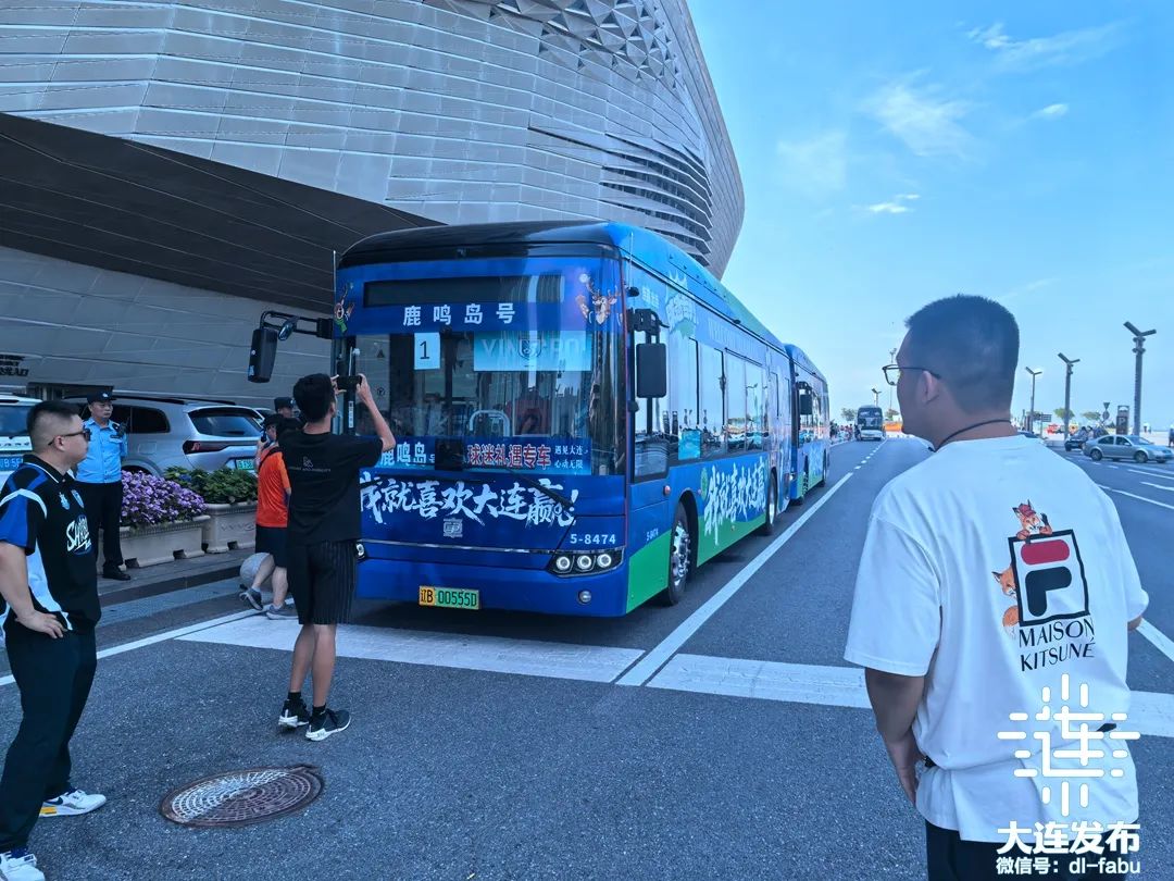 为了方便客队球迷前往梭鱼湾足球场观赛,赛前,大连特别为客队球迷安排了专属服务——“鹿鸣岛”号客队球迷礼遇专车。