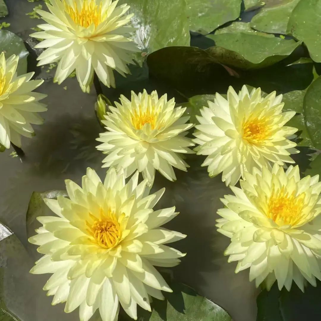‘普拉卡’曾摘得2020年IWGS耐寒睡莲新品种桂冠,是当之无愧的“王牌选手”。花朵如盛满阳光的金杯,明黄的花瓣舒展着绸缎般的光泽,层层叠叠的花朵便在碧波上跳起欢快的圆舞,蓬勃的生机扑面而来。