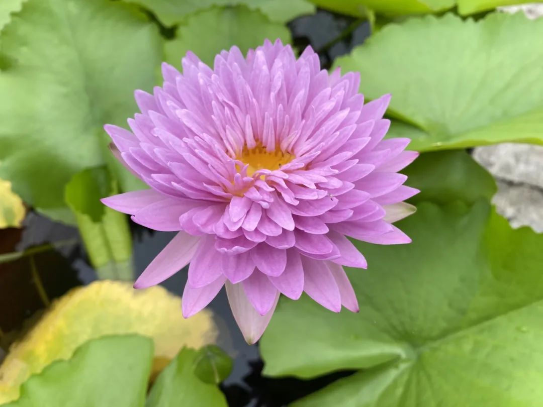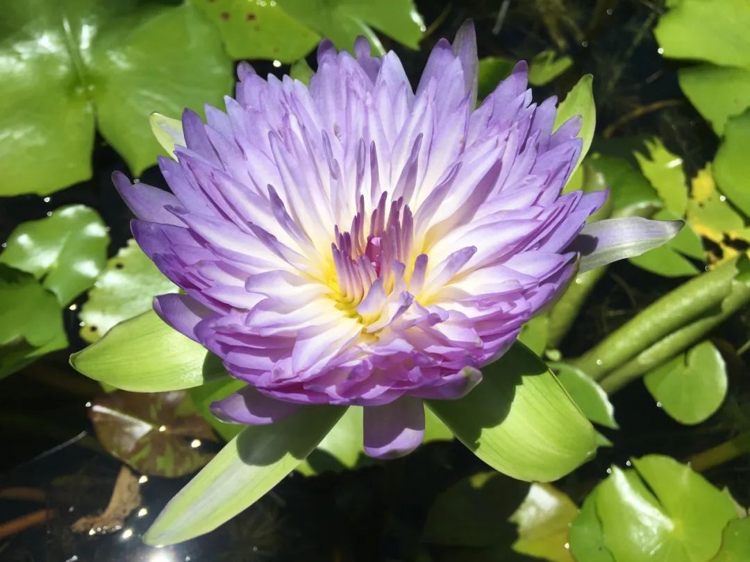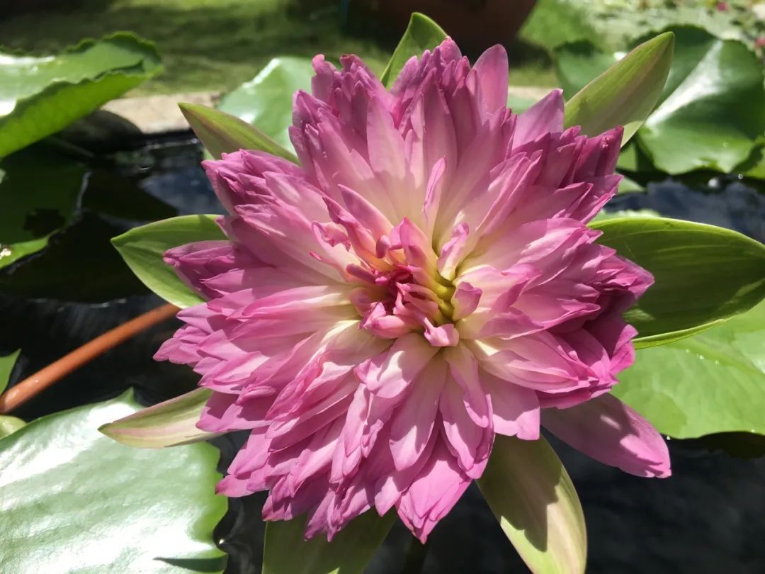 ‘粉红锦绣’是热带睡莲中的 “盛装舞者”。粉紫色的花瓣层层叠叠如堆云叠绣,阳光穿过花瓣时,便折射出珍珠般的光泽。