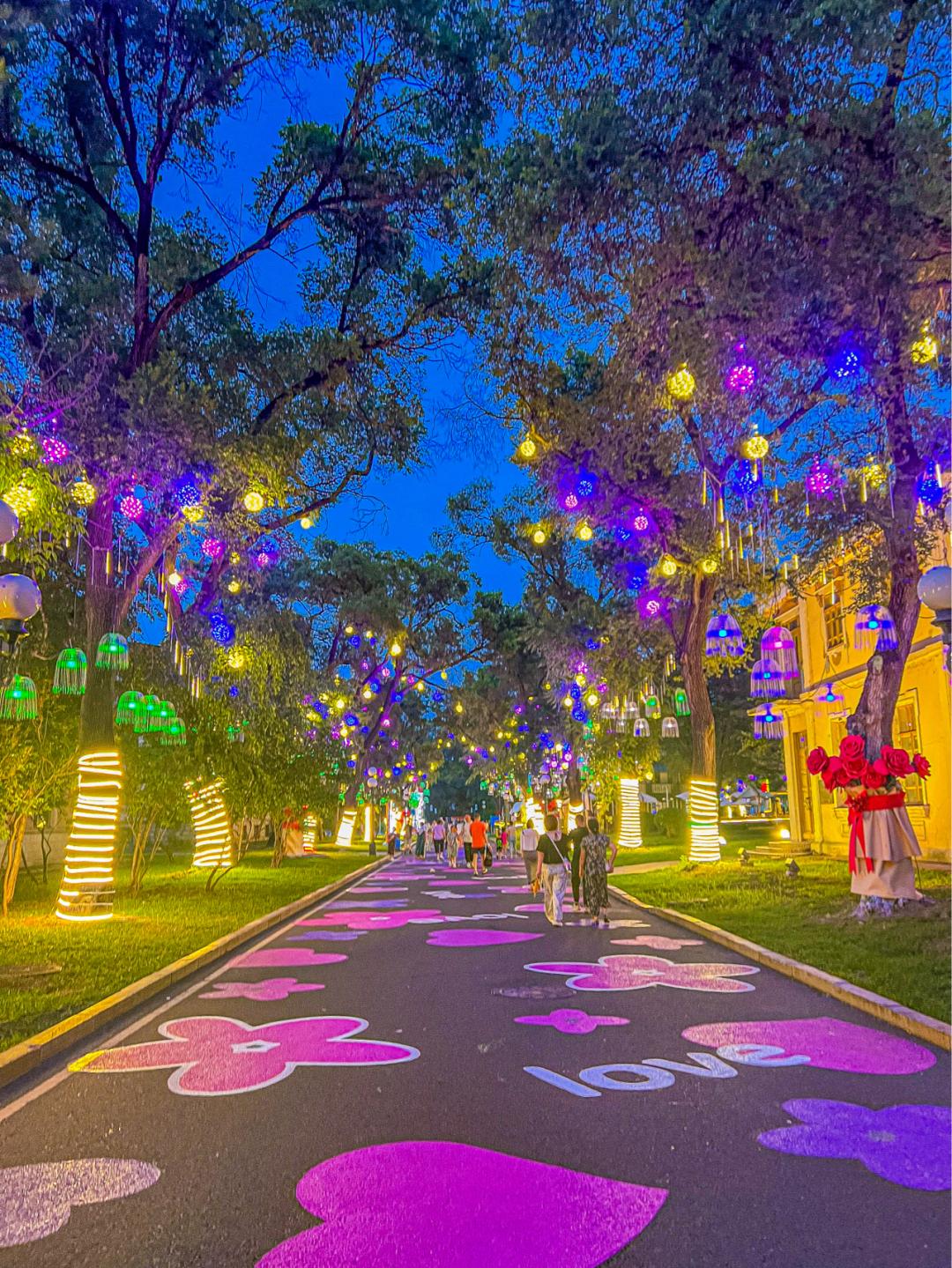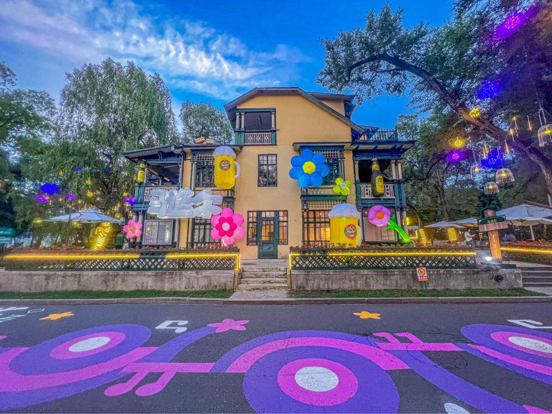 太阳岛上除了冰雪艺术馆,临江街步行街也别具风采。马迭尔啤酒博物馆的外围,是浪漫与复古的碰撞。精心装点的气膜在灯光下别具风情,每一处细节都藏着巧思。当暮色渐浓,“一路芳心”网红步行街的灯光次第亮起,有满街的缤纷彩绘、有露天乐队的演奏、有炫酷的电音巴士、有欢乐的《遇见·哈尔滨》演员巡游,更有松花江的粼粼波光。
