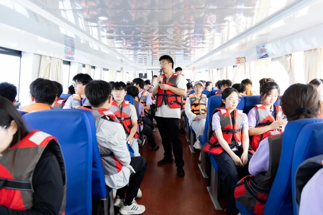7月12日,在老师们的组织和带领下,100名学员井然有序的登上船只。登船后,学习活动率先展开。学员们首先深入学习了《习近平总书记关于中线水源地生态治理重要指示及南阳实践》。在水资源与现代农业学院刘韩、王荣欣两位老师的悉心指导下,学员们参与了一场趣味盎然的实操环节——“来一瓶我的渠首水”。整个过程将课堂上的理论知识转化为生动的亲身体验,让大家对水源保护和水质特性有了更深刻、更立体的认识。大家不仅深刻领会到国家领导人对水源保护工作的殷切嘱托,感受到这份嘱托背后对生态安全、民生福祉的深切关怀,也系统了解了南阳地区在落实指示精神过程中,结合本地实际制定的具体行动方案,以及在水源地生态修复、污染防治等方面取得的扎实成效。