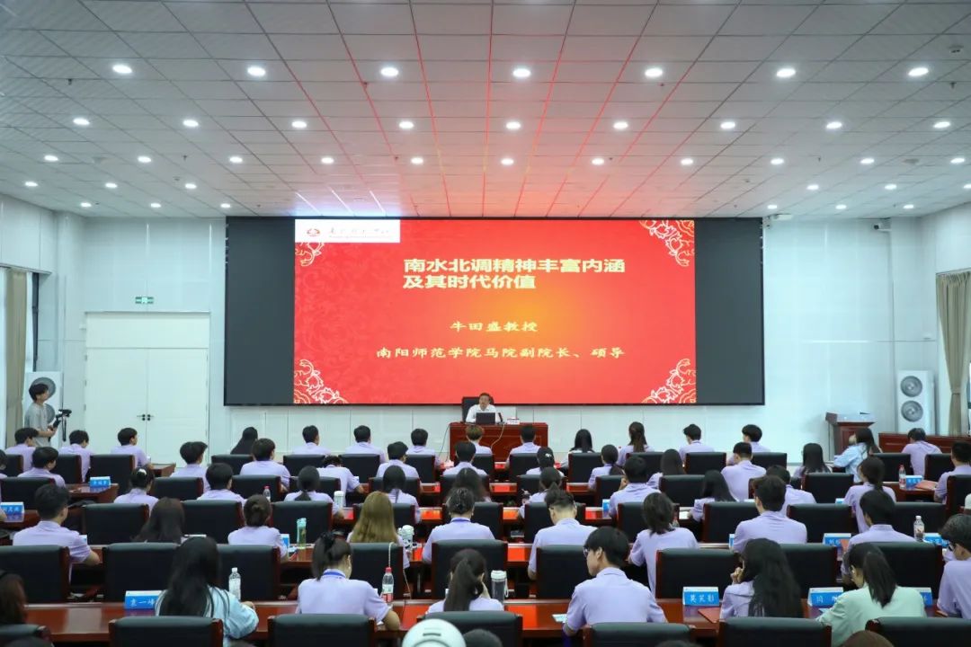 7月8日下午第一讲,南阳师范学院马克思主义学院副院长,教授,研究生导师牛田盛讲授《南水北调精神丰富内涵及其时代价值》,引导学生认识“大国工程”背后的人民情怀与责任担当。下午第二讲,南阳师范学院水资源与现代农业学院党委书记狄魁带来《护水渠首 志留青绿——在南水北调中线工程水源保护中践行新时代志愿服务精神》,以鲜活案例展现青年力量。