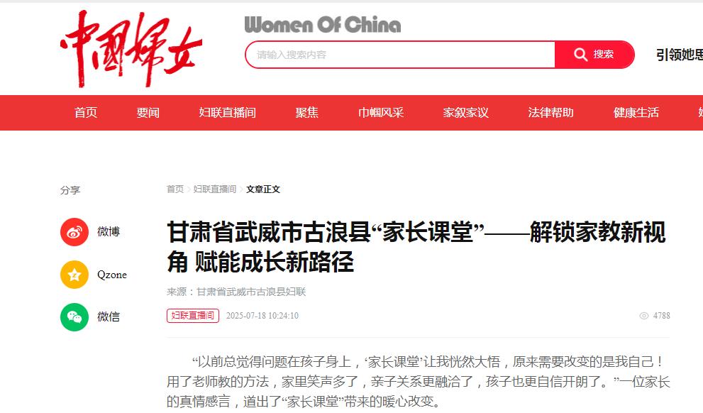 中国妇女 || 武威市古浪县“家长课堂”——解锁家教新视角 赋能成长新路径