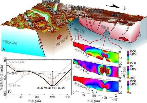 由中国地质科学院地质研究所李海兵研究员率领的研究团队在青藏高原中部羌塘地块无人区开展了详实的野外地质调查,结合多学科综合研究结果,首次揭示了青藏高原中部物质的向东迁移是以非均匀的变形模式展开的。羌塘地块南部自约35Ma以来形成了2500千米~3000千米长的巨型走滑边界断裂带,并驱动了中央谷地的显著抬升;地块东部自23Ma以来主要受走滑断裂带控制向东-东南方向非均匀挤出,至约10Ma,这种非均匀挤出逐渐延伸至整个东部块体;地块中西部物质自约15Ma开始以更高的伸展变形速率弥散式非均匀向东运移,并形成系列近SN向正断裂,并与中、下地壳非完全解耦。因此,与藏南的伸展变形机制截然不同。系列成果发表在国内外权威期刊NSR、Geology、Tectonics、JSG、Palaeo-3和岩石学报。这种非均匀变形演化及其大型断裂带的控制作用对认识整个青藏高原的应力传播和形成过程具有极其重要的意义。