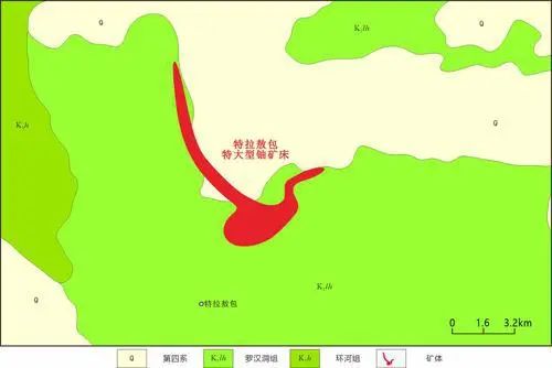 核工业二〇八大队发现了特拉敖包铀矿床,该矿床为鄂尔多斯盆地北部下白垩统落实的首个特大型砂岩铀矿床,是新时代以来新地区、新层位铀矿找矿取得的最大成果。2019年率先在鄂尔多斯盆地下白垩统取得了铀矿“三新”找矿的重大突破,发现了第一个高平米铀量富、厚工业矿孔。含矿层位为环河组,主要矿体位于环河组上段中下部。矿体在垂向上主要富集于红色氧化带向绿色还原带变化的过渡带砂岩中,含矿岩性为褐绿色、绿褐色和褐灰色砂岩,矿体受氧化前锋线的控制。矿体整体有埋深浅、厚度大、平米铀量高的特点。该矿床重要找矿发现拉开了盆地下白垩统的找矿序幕,大幅拓展了盆地铀矿找矿空间,使鄂尔多斯盆地下白垩统有望发展为世界级巨型铀成矿带。