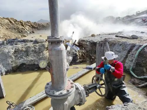 西藏地勘局地热地质大队是我国唯一一支高原高温地热勘查功勋队伍,长期致力于西藏高温地热资源勘查工作。团队在中国工程院院士多吉的指导下,组织实施了定日县鲁鲁地热资源勘查示范项目,以活动断裂-带状地热资源探测为指引,“热穹隆”地热成因机制为主线,综合运用高精度遥感、地质、地球物理、地球化学等“空-天-地-井”一体化探测技术方法手段,优选热储有利靶区,实施钻探验证。成功实施3口高于180℃的地热井,特别是ZK01在克服多次井喷的情况下,于350米处探获193℃的高温两相流体,钻遇的热储温度暂列西藏第四。经证实,鲁鲁热田深部具有可观的可供经济开发利用的温度有望大于200℃的高温地热资源。这是首次在拉轨岗日热隆伸展带中部一带探获的典型高温地热资源,突破了西藏高温地热田只出现在南北向裂谷和雅江缝合带的传统认识。创新提出的拉轨岗日热穹隆带状地热资源成藏模式可为同类型地热资源开发利用提供参考。
