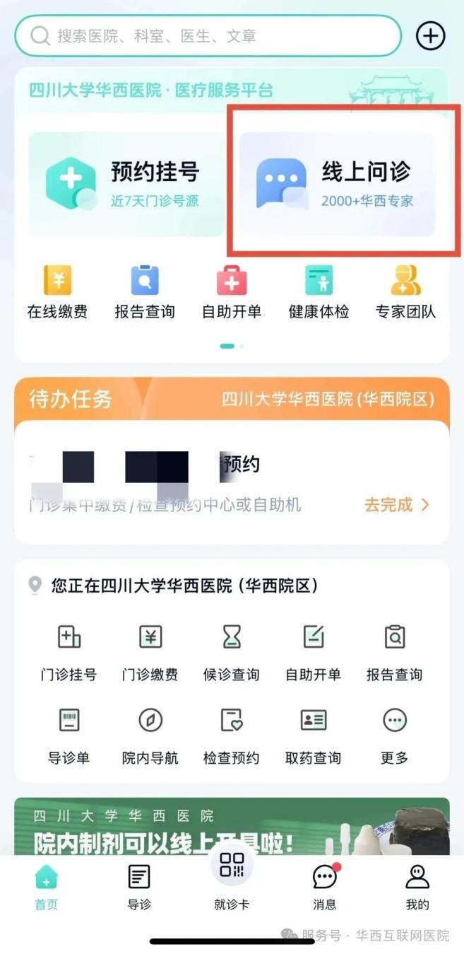 第一步:关注“四川大学华西医院”微信公众号或“华医通”APP。