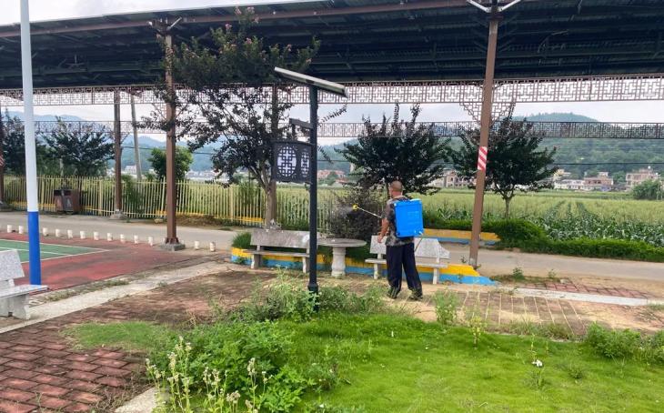 为从源头上杜绝蚊媒传染病的传播风险,义都镇结合爱国卫生运动,广泛发动干部群众开展环境卫生大整治行动,重点清理积水点、废弃容器、下水道等蚊虫易滋生的场所,并对公共区域进行全面药物喷洒消杀,不放过任何一个卫生死角。义都镇红旗村驻村第一书记李桂萍说:“我村迅速行动,组织党员和村民小组长成立应急小队,通过广播、微信群宣传防蚊知识,并开展消杀工作,组织村民自制防蚊水,手把手教学,确保家家户户都能防护到位。”