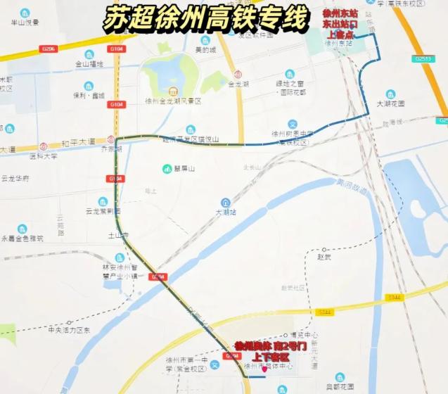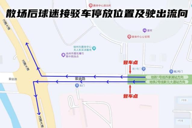 “苏超”徐州接驳1号线:地铁1号线乔家湖站→奥体中心南门