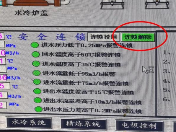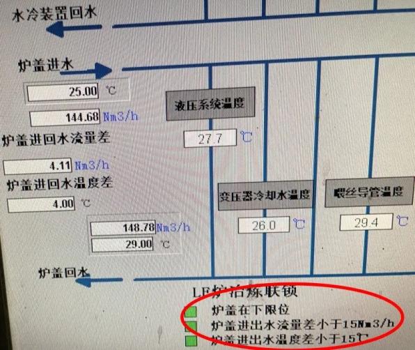 LF炉水冷钢包盖出水温度监测报警装置未与电极自动断电和升起装置联锁(左右滑动查看更多)